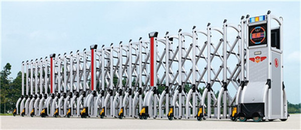 伸縮門(Retractable door),就是門體可以伸縮自由移動,來控制門洞大小、來控制行人或車輛的攔截和放行的一種門。伸縮門主要由門體、驅(qū)動電機,滑道、控制系統(tǒng)構(gòu)成。門體采用優(yōu)質(zhì)不銹鋼及鋁合金專用型材制作,采用平行四邊形原理鉸接,伸縮靈活行程大。驅(qū)動器采用特種電機驅(qū)動,蝸桿蝸輪減速,并設(shè)有自動離合或手動離合器,自動離合停電時可自動啟閉,手動離合停電時可手動啟閉,控制系統(tǒng)有控制板,按鈕開關(guān),另可根據(jù)需求配備無線遙控裝置。