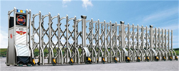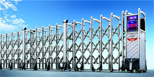 伸縮門(Retractable door),就是門體可以伸縮自由移動(dòng),來(lái)控制門洞大小、來(lái)控制行人或車輛的攔截和放行的一種。伸縮門主要由門體、驅(qū)動(dòng)電機(jī),滑道控制系統(tǒng)構(gòu)成。門體采用優(yōu)質(zhì)不銹鋼及鋁合金專用型材制作,采用平行四邊形原理鉸接,伸縮靈活行程大。驅(qū)動(dòng)器采用特種電機(jī)驅(qū)動(dòng),蝸桿蝸輪減速,并設(shè)有自動(dòng)離合或手動(dòng)離合器,自動(dòng)離合停電時(shí)可自動(dòng)啟閉,手動(dòng)離合停電時(shí)可手動(dòng)啟閉,控制系統(tǒng)有控制板,按鈕開(kāi)關(guān),另可根據(jù)需求配備無(wú)線遙控裝置。